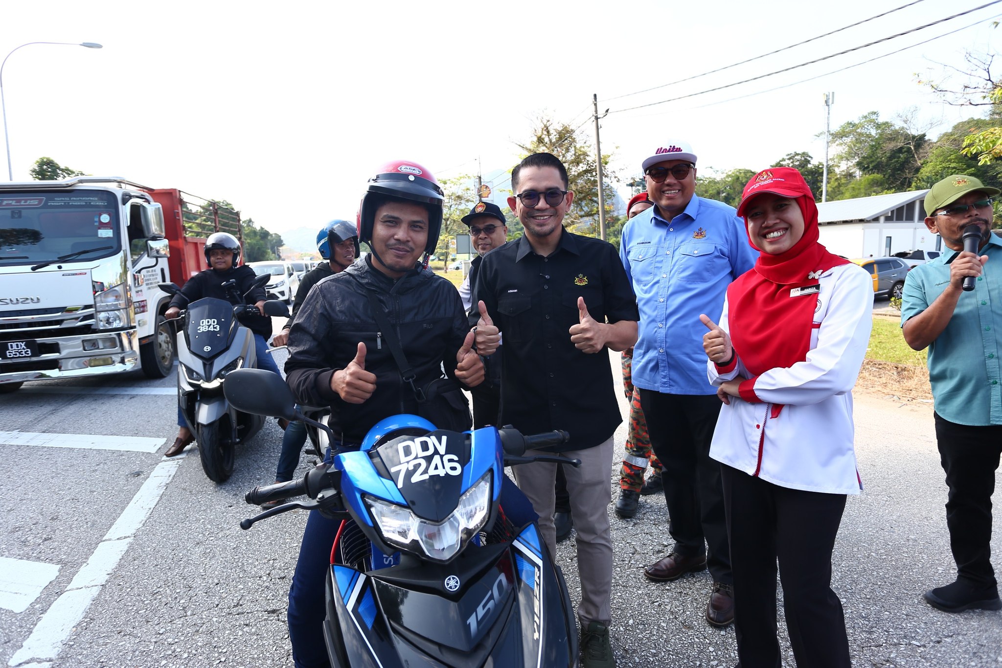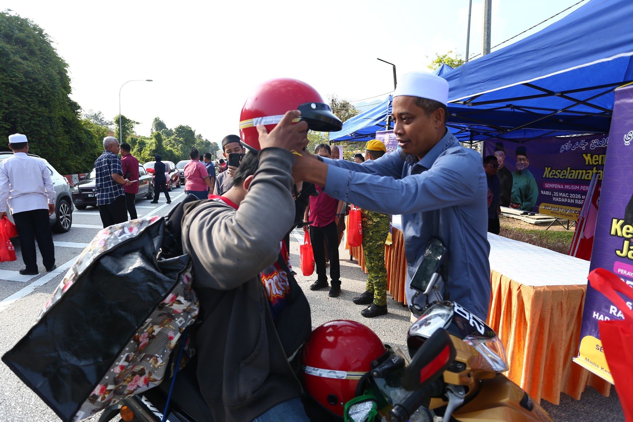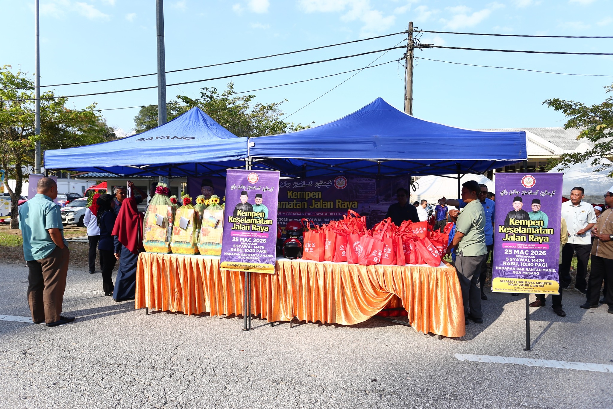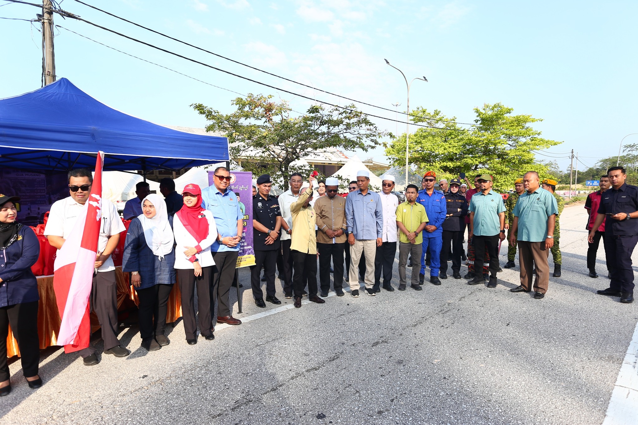 GUA MUSANG, 25 MAC 2026 (RABU) – Kempen Keselamatan Jalan Raya sempena musim perayaan Aidilfitri 1447H/2026M telah berjaya dilaksanakan pada jam 8.30 pagi bertempat di hadapan R&R Rantau Manis, Gua Musang. Program ini dianjurkan PTJGM serta semua Jabatan/Agensi di Jajahan Gua Musang dengan kerjasama Majlis Keselamatan Jalan Raya (MKJR) Negeri Kelantan bagi meningkatkan kesedaran masyarakat tentang kepentingan keselamatan ketika berada di jalan raya, khususnya menjelang musim perayaan yang menyaksikan peningkatan aliran trafik.
