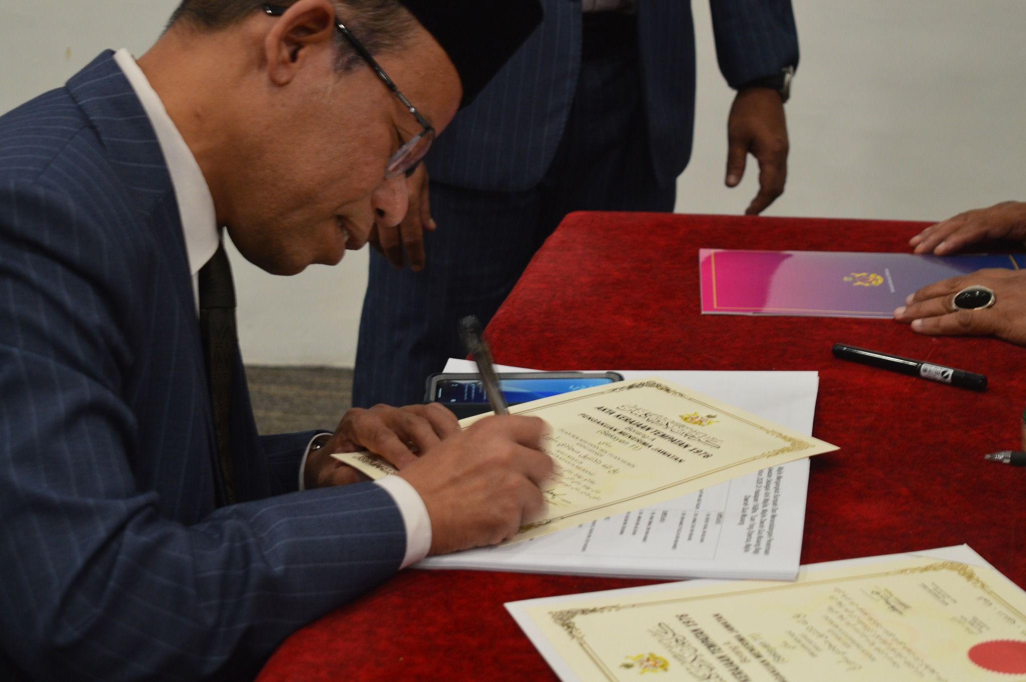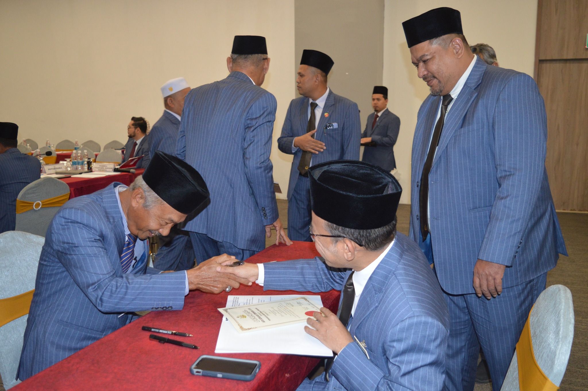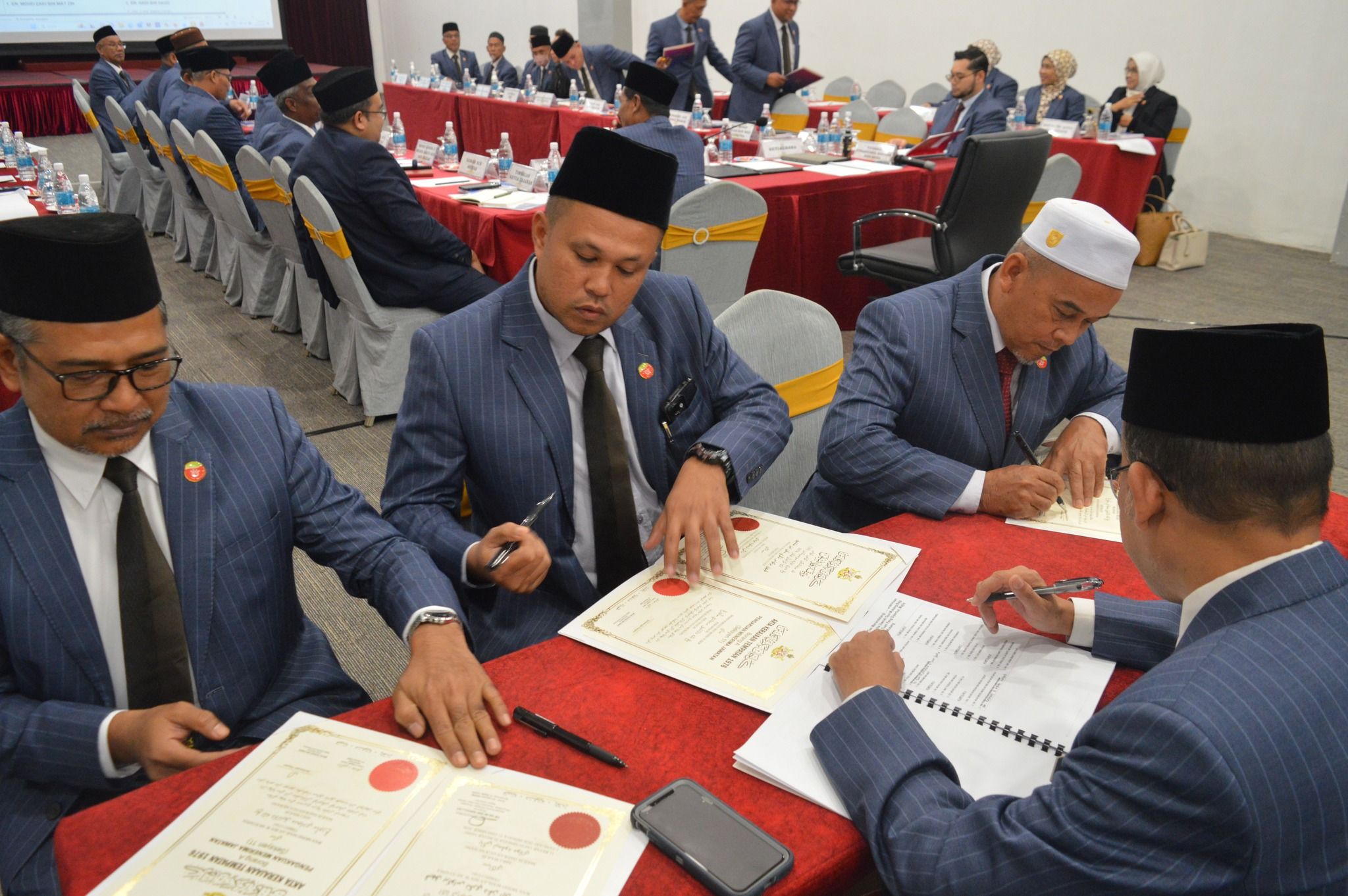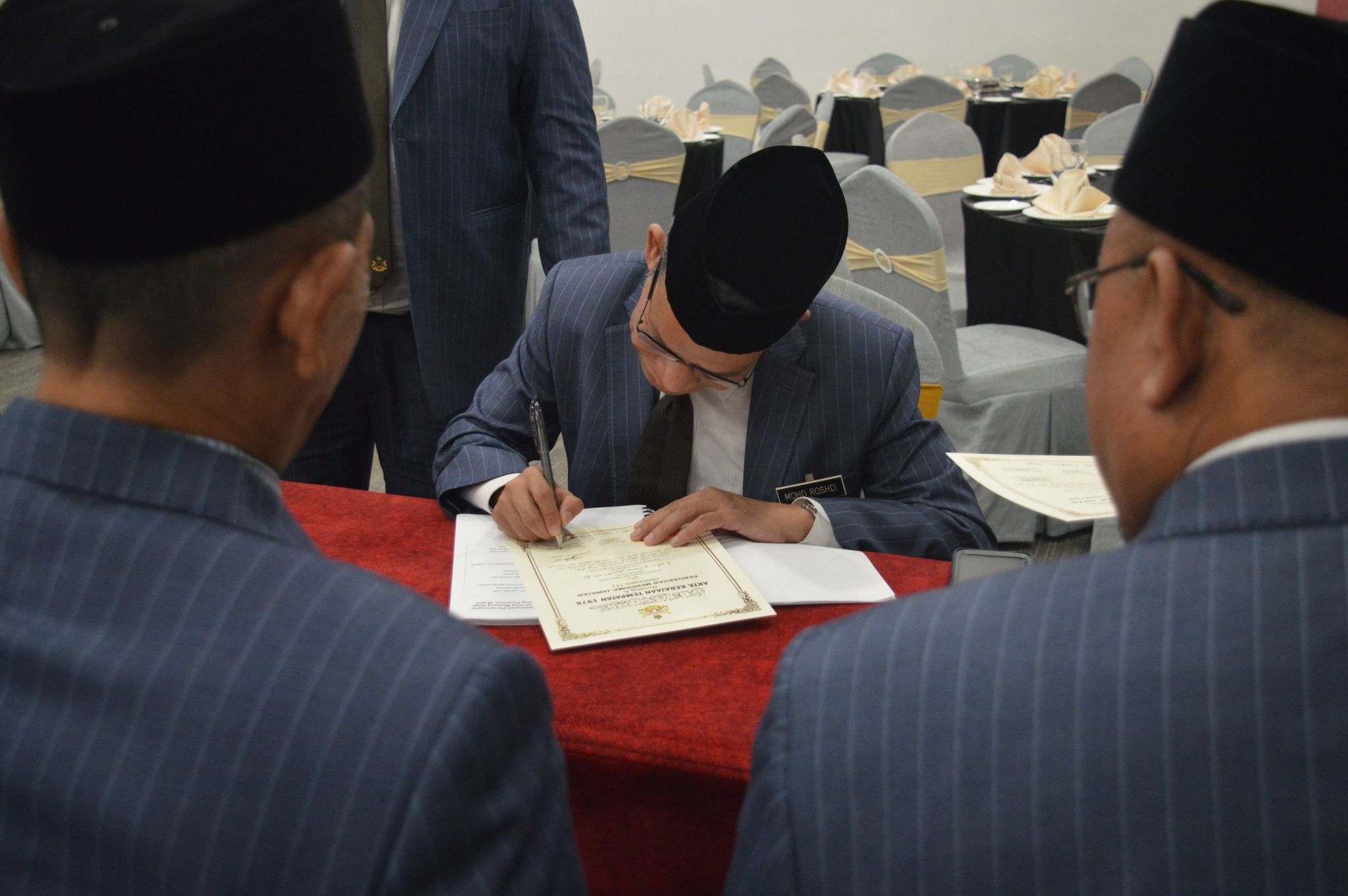 KOTA BHARU, 12 JANUARI 2026 – Majlis Mengangkat Sumpah dan Menandatangani Penerimaan Jawatan sebagai Ahli Majlis, Majlis Daerah Gua Musang bagi Tahun 2026 telah berlangsung dengan penuh tertib dan istiadat di H-Elite Design Hotel, Kota Bharu. Majlis tersebut telah disempurnakan di hadapan YABrs. Encik Mohd. Roshdi bin Ismail, Yang Dipertua Majlis Daerah Gua Musang. Majlis diteruskan dengan Mesyuarat Penuh MDGM Kali Ke-1/2026. Upacara ini merupakan satu simbolik penting yang menandakan penerimaan rasmi amanah dan tanggungjawab oleh Ahli-ahli Majlis yang dilantik bagi tempoh tahun 2026.